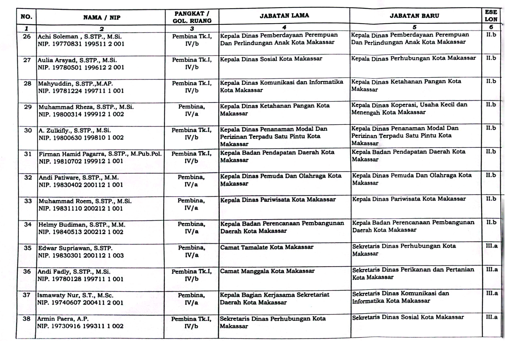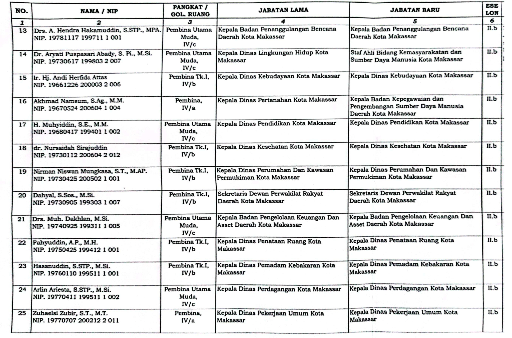 Berikut Daftar Pejabat Baru Eselon II dan sejumlah Eselon III Pemkot Makassar 2023: