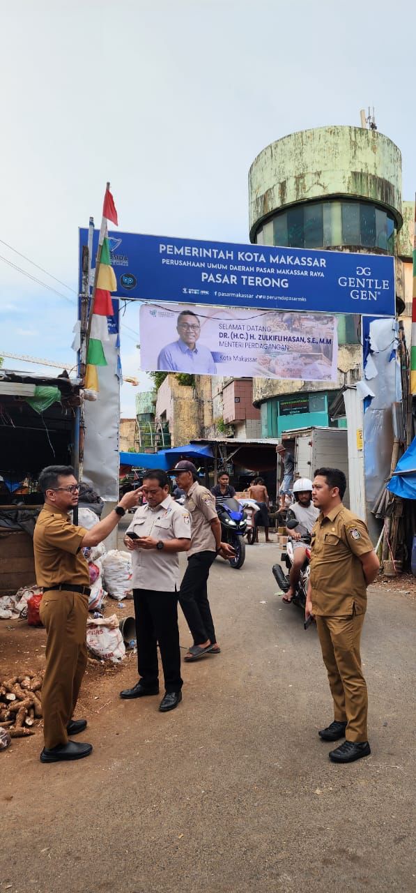 ABATANEWS, MAKASSAR — Kepala Dinas Perdagangan (Kadisdag) Kota Makassar Arlin Ariesta meninjau Pasar Terong Makassar jelang kunjungan Menteri Perdagangan (Mendag) Zulkifi Hasan.