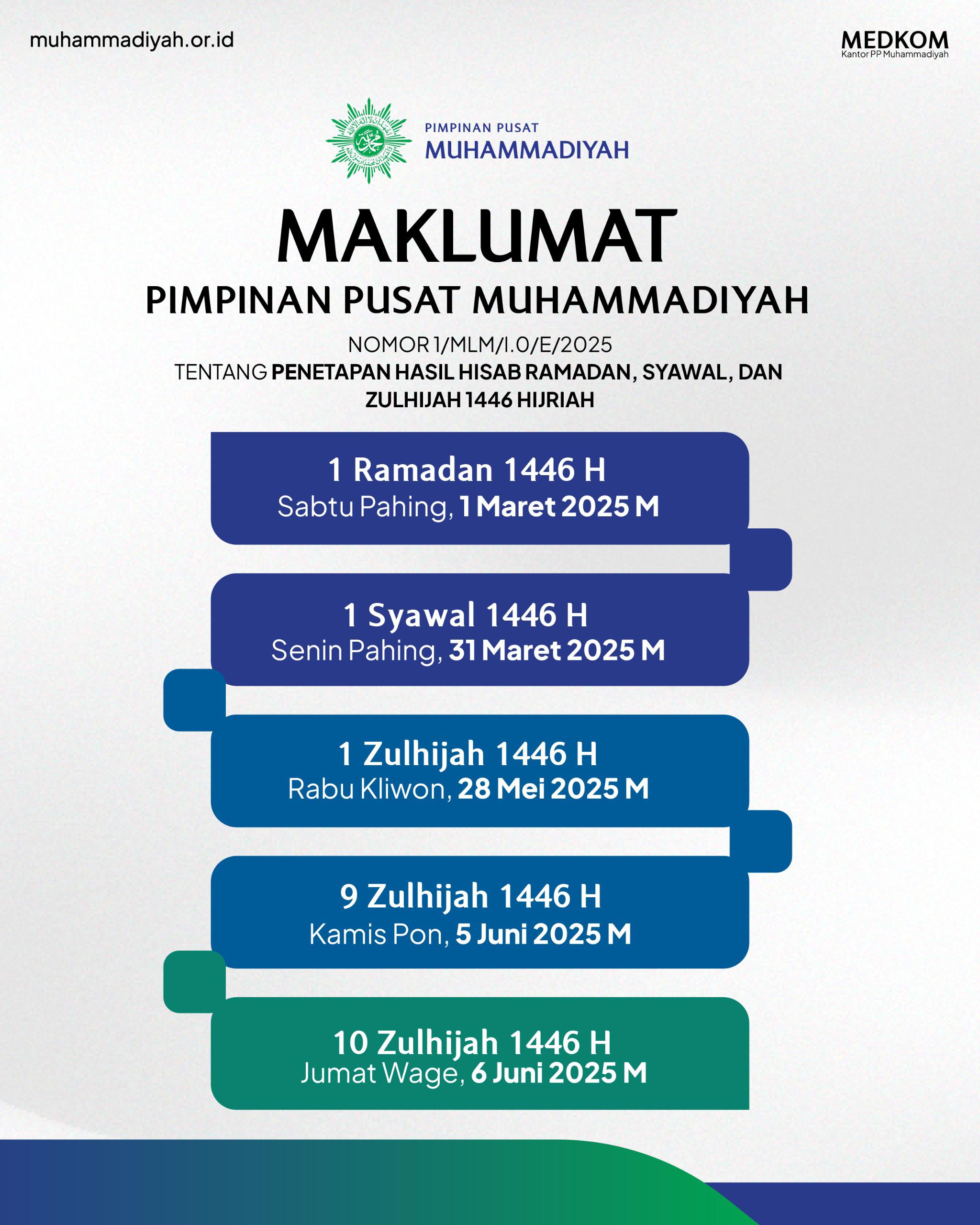 Keputusan ini sejalan dengan metode perhitungan astronomi yang menjadi pedoman Muhammadiyah, memastikan umat Islam dapat bersiap lebih awal dalam menyambut bulan suci Ramadhan dan hari raya dengan kepastian waktu yang jelas.