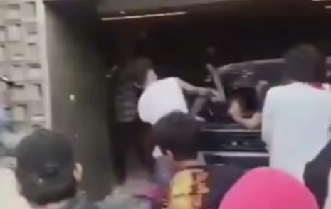 Mobil Lexus yang terparkir di garasi tak luput dari amukan massa. Sejumlah massa terlihat merusak mobil mewah tersebur hingga kacanya pecah.